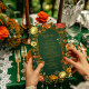 Elevate your wedding tablescape with this spellbinding wedding menu card from the Druid Hills Collection, designed to enchant guests and complement your fantasy-inspired celebration. With rich emerald green tones, burnished gold filigree, and a cascading frame of seasonal roses in ochre, blush, ivory, and autumn rust, this fully editable menu evokes the mystique of ancient forests and the romance of old-world Europe. Perfect for D and D or Celtic-themed weddings, fantasy fans, or autumnal celebrations steeped in lore and elegance.
