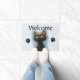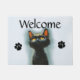 Enchanted Black Cat and Paw Prints Welcome Doormat