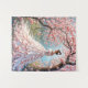A graceful woman in an elegant, flowing gown stands amidst a grove of cherry blossom trees in full bloom. The soft pink and white hues of her dress blend harmoniously with the delicate flowers surrounding her, creating a serene and magical atmosphere. The scene captures the essence of tranquility and beauty, evoking a sense of peace and wonder.