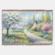 This soft watercolor landscape evokes a tranquil cottagecore dream, where a winding path drifts through flowering meadows towards peaceful countryside homes. Airy brushstrokes and gentle washes create a light, whimsical mood filled with blooming trees, pastel wildflowers, and fresh spring greens. Blush pinks, creamy whites, sky blues, and tender yellows blend seamlessly, giving the scene an enchanting, storybook quality. The composition feels calm and inviting, capturing the romance of slow rural life and the quiet beauty of nature awakening. With its folk-inspired charm and serene atmosphere, the artwork radiates warmth, nostalgia, and a sense of peaceful escape into a blossoming countryside. AI generated artwork.