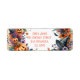 This vibrant Halloween-themed illustration features pumpkins, a witch hat, bats and flowers.