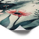 A gentle hybrid sits in a misty forest clearing, adorned with a flower, feathered necklace, and delicate charms. Surrounded by blooming flowers, trees, and soaring bats, this dreamy scene blends fantasy and serenity with a touch of gothic charm. Perfect for prints and gifts that evoke quiet magic and woodland wonder. AI