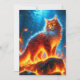 This captivating image features a cat standing amidst flames, bathed in the warm glow of the fire. The mystical and fantasy elements of the scene evoke a sense of enchantment, as the feline's fur glistens in the blaze. It's a powerful visual that blends the fierce and magical, creating an unforgettable image of wonder and intrigue.