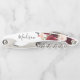 Pop the question to your bridesmaids, maid of honour, flower girl, etc. with a personalised wine corkscrew! The personalised corkscrew features a bouquet of watercolor burgundy, blush pink, and navy blue flowers with lush green foliage. Personalise the pink and burgundy floral corkscrew by adding the bridesmaid's name. The design repeats on the back.