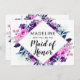 Enchanted Floral Violet Purple and Silver Flowers Leaves Stems and Vines Watercolor Geometric Diamond Framed Maid of Honour Proposal Card
