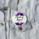 Enchanted Floral Purple and Silver Flowers Leaves Stems and Vines Watercolor Maid of Honour Monogrammed Name Bridal Wedding Party Favour Button