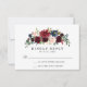 Stylish and elegant floral RSVP cards featuring a bouquet of burgundy, blush pink, and navy blue flowers with lush green foliage. Personalise the design by adding your wedding details. The chic wedding response cards are perfect for spring and summer weddings and were designed to coordinate with our Enchanted Floral wedding collection.