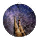 This design features a beautiful image of two tall trees rising up into the sky, surrounded by other trees in a forest. The scene is set at night-time when everything looks particularly magical and enchanting. There is a flock of birds in flight overhead. The sky is made up of a beautiful mixture of purple and blue; it is dotted with bright white stars.