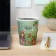 Each cup showcases a sweet fairy, a charming fox, a beautiful butterfly, whimsical mushrooms, and delightful strawberry snails, all set against a lush green magical woodland backdrop. The design prominently displays 'Olivia's FAIRY FIRST BIRTHDAY', making it easy to personalise for your special event. The same enchanting image wraps around the entire cup, ensuring a captivating view from every angle.