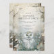 A magical enchanted forest themed birthday invitation for a little girl or boy birthday party, featuring an enchanted forest setting in the woods with a magical owl, flowers and trees. Available in print, as a digital download to send on your phone, or both.