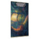 Double sided artistic clipboard features an AI generated digital art image of a magical forest garden gate with sun ray beaming in background.