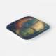 Beautiful paper plate features an AI generated digital art image of a magical forest garden gate with sun ray beaming in background.