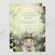 A magical enchanted forest themed birthday invitation for a little girl or boy birthday party, featuring an enchanted forest setting in the woods with a magical woodland mouse, flowers and trees. Available in print, as a digital download to send on your phone, or both.