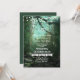 Beautiful outdoor rustic wedding theme with string lights and touch of magical sparkle among the trees. Chalkboard style typography text. A perfect choice for garden or any outdoor wedding venue. Card back text says reception to follow, but can be customised or deleted if you prefer.