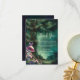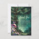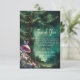 A whimsical watercolor illustration of a majestic tree in an enchanted forest, with lush foliage in emerald green, sparkling with fairy lights and magic dust, with a sprinkle of mushrooms and butterflies in pink and purple, decorates this spring summer fall winter baby shower thank you card with an enchanted forest theme or mushroom theme or woodland theme. An elegant, modern invitation for a fairytale baby shower. Perfect for moms and parents who love the fairytale forest setting, the fairy forest or fairy garden theme, the mushroom theme, butterflies theme and emerald green, mauve, lavender and pink.