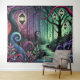 Enchanted Forest Path with Glowing Lanterns Tapestry