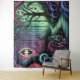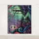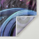 This mystical fantasy design portrays a winding forest path illuminated by glowing lanterns hanging from dark, twisted trees. Vibrant swirls of teal, purple, and magenta create an otherworldly atmosphere, blending mystery with enchantment. The glowing lights and intricate foliage details give the scene a magical, dreamlike quality, inviting the viewer deeper into the glowing woodland.