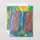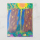 Follow the path illuminated by the blazing sun through the enchanted forest until you find the magic clearing. Painted in vibrant acrylic colors the green of the leaves, the purple and yellow of the flowers and the fiery orange of the sun contrast with the mystical blues that will tempt you to go deeper among the trees.