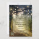 Save the Date card with a path through an enchanted forest with festive string lights. The QR code template is optional and very easy to customise.