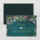 A whimsical watercolor illustration of lush emerald green foliage, accented with pink, fuchsia, mauve, and purple hues, sparkles with fairy lights and a touch of magic dust. This enchanting RSVP card features an enchanted forest theme with a delicate frame of roses in pink, purple, and mauve. This elegant and modern response card is perfect for a fairytale birthday, bridal shower, baby shower or wedding, ideal for those who adore a magical forest setting, fairy garden themes, or the timeless beauty of emerald green, mauve, and gold.