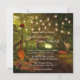 Wedding invitation featuring an enchanted fairy tale like forest with string lights, a swing, flowers and cute animals. If you like the back side better you can copy and paste the image to the front, or vice versa. This invitation has a matching RSVP card.