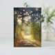 A magical wedding RSVP card featuring a path in an enchanted forest with festive string lights. Beautiful as RSVP card for a garden wedding or a celebration in the park. This RSVP card is part of a wedding collection.