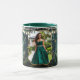 Personalize this chic enchanted forest floral Quinceañera Sweet 15 birthday keepsake mug with your own wording and your favorite Quince photograph easily and quickly. Simply click the Edit Using Design Tools button to further edit the text, wording, font style, font size, font color, add more text, move or remove some images. Featuring a girl dressed in an emerald green dress, a gold glitter XV and an enchanted forest background. Matching items available in store. (c) Somerset Fine Paperie.