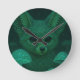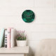 This round clock features an intricately illustrated fox framed by glowing, bioluminescent mushrooms and swirling organic patterns in deep teal and emerald tones. You will notice the fine detailing and crisp lines that make the fox’s expressive eyes and the mushroom gills pop — qualities that read like high-end art rather than a generic print. The design works beautifully as a focal point above a sofa, on a gallery wall, or in a cozy boho bedroom; this product will allow you to mix fairycore and cottagecore aesthetics effortlessly with modern interiors.
