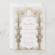 Step into an enchanted garden with this exquisite bridal shower invitation, perfect for celebrating the bride-to-be's upcoming nuptials. The front of the invitation is adorned with a flourish of botanical artistry, featuring flowers in soft hues of peach, coral, blush pink, and sage green, nestled against an ivory background. A classical urn overflows with the floral arrangement, while delicate peacocks add an air of regal charm. Golden accents and elegant calligraphy enhance the vintage vibe of this beautiful invite. The back of the invitation is equally stunning, showcasing a sophisticated cream and gold geometric pattern that exudes timeless elegance. This invitation is a lovely prelude to a wedding filled with romance and beauty.