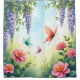 The enchanted garden awakens beneath a golden sun, its paths dappled with shifting light as cascades of wisteria spill like lilac waterfalls from arched trellises. Their fragrance lingers sweetly in the air, mingling with the perfume of roses, peonies, and wild blossoms that bloom in vibrant clusters along winding stone walkways. Butterflies drift lazily between petals, their wings shimmering like stained glass, catching every flicker of light as though painted by magic itself. A gentle breeze stirs the leaves, carrying a soft hum of bees and the distant trickle of a hidden fountain.