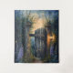 Step into a dreamy twilight world with this enchanting design featuring a rustic wooden garden gate, softly illuminated by a glowing lantern and surrounded by lush foliage and blooming foxgloves. Tiny fireflies dance through the dusky air, creating a magical, fairytale atmosphere that feels both nostalgic and otherworldly. The painterly style and rich colour palette of midnight blues, soft golds, and violet tones invite you to imagine secret paths and quiet moments under the stars. Perfect for bringing a touch of woodland wonder to any space, this piece evokes the charm of moonlit gardens and summer nights. AI generated artwork.