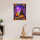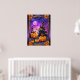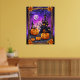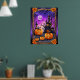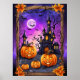 Bring the magic of Halloween into your home with this enchanting poster. Featuring three expressive jack-o’-lanterns in the foreground and a whimsical haunted castle silhouetted against a vibrant twilight sky, this artwork captures the spooky yet charming essence of the season. Bats flutter around a full moon, while autumn leaves frame the scene, adding a touch of seasonal warmth. Perfect for Halloween decor, this poster will delight both kids and adults alike.