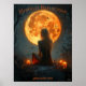 Step into a serene yet haunting Halloween night with this mystical poster featuring a woman seated under a glowing full moon, surrounded by flickering candles and bats flying overhead. The dark atmosphere and enchanting moonlight create a perfect blend of mystery and magic, ideal for Halloween decor or anyone captivated by the supernatural. Customise the text to make this artwork uniquely yours for Halloween parties or spooky seasonal decor.