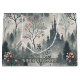 This fantastical scene gift bag features a dark, towering castle with glowing windows nestled in a misty forest of blue and grey tones. Surrounded by slender evergreens, bare-branched trees, and soft blossoms in pink and orange, the landscape shimmers with subtle specks of magical light. The twilight ambiance and ethereal details create a whimsical, mysterious atmosphere, perfect for lovers of fantasy, fairytales, and dreamlike forest settings.