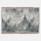 This fantastical scene blanket features a dark, towering castle with glowing windows nestled in a misty forest of blue and grey tones. Surrounded by slender evergreens, bare-branched trees, and soft blossoms in pink and orange, the landscape shimmers with subtle specks of magical light. The twilight ambiance and ethereal details create a whimsical, mysterious atmosphere, perfect for lovers of fantasy, fairytales, and dreamlike forest settings.