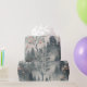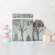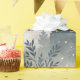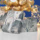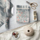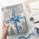 This fantastical scene wrapping paper features a dark, towering castle with glowing windows nestled in a misty forest of blue and grey tones. Surrounded by slender evergreens, bare-branched trees, and soft blossoms in pink and orange, the landscape shimmers with subtle specks of magical light. The twilight ambiance and ethereal details create a whimsical, mysterious atmosphere, perfect for lovers of fantasy, fairytales, and dreamlike forest settings.