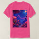 I give wanted to give this a 4 instead of a 5 because these Basic DARK T0shirts run unexpectedly SLIM or Narrow. Which is great if you do not have a potbelly, but I have a paunch. It isn't the shirt's fault that I've got a beer belly. The design and shirt itself is a quality cotton shirt. The color is more of a deep purple, but still a very pretty color. The Basic DARK T-shirts run a bit SLIMMER than the Basic Ts. The neck is a fraction narrower (or seems to be narrower) also. I'm a paunchy middle-aged woman and my neck is 12 inches (31cm) thick and the neckline fell about the same as in the photo of the man, and I had the desire to tug it a bit. So if you're a thick necked man or like loose shirts, be aware these are slimmer shirts. Once I get rid of my lockdown paunch it'll look great. The shirt washed well in cold water with no apparent bleeding. We don't have a dryer, so it hung dry. Did not shrink. Love the colors and the design. The design looks smaller on my shirt than it does on the model on-line. But still, it looks good on the shirt. The printing looks as it does on the model, just the size seems fractionally smaller. Washed garment in cold water, hung dry and design appeared unaffected.