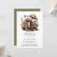Enchanted mushrooms forest woodlands boy 1st birthday invitation. Magical giant mushrooms, forest animals, and trees, watercolor invitation. Green on the back of the invitation.