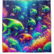 The “Enchanted Ocean Whimsy” shower curtain captures the playful spirit of the sea with its vibrant depiction of striped green fish and a medley of multicolored marine life. Amidst the brightly coloured coral reefs and sea plants, these whimsical creatures create a lively underwater dance that’s sure to bring joy to your bathroom decor.