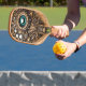 A pickleball paddle adorned with a mesmerising green eye, a unique and mystical design that catches the eye.
