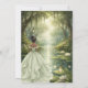 Invite guests into a magical fairytale celebration with this enchanting Quinceañera invitation. Set within a dreamy forest pond scene, this design features a graceful princess in a flowing sage green ball gown, a regal gold crown, glowing firefly-like lights, water lilies, and a charming frog prince detail.