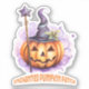 Step into a world of whimsy and magic with this adorable Halloween sticker featuring the phrase “Enchanted Pumpkin Patch.” A smiling jack-o’-lantern dressed in a witch hat and holding a sparkling purple witch wand brings a touch of charm and enchantment to spooky season. Perfect for those who prefer cute over creepy, and magic over mayhem.