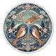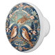 The "Enchanted Sparrow Serenade Ceramic Knob" showcases a harmonious scene of three sparrows, each exquisitely detailed and perched gracefully on intertwining branches. The background features a blend of deep blue and soft turquoise hues, creating a tranquil setting that highlights the sparrows' warm brown and white plumage. Surrounding the birds is an elaborate arrangement of delicate flowers and curling vines, reflective of the organic and flowing lines typical of the Art Nouveau movement. The entire design is encased within a circular frame adorned with intricate patterns, making this knob not just a practical addition to your home, but a piece of art that celebrates the beauty of nature and fine craftsmanship.