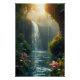 Step into a dreamy landscape where a turquoise waterfall flows gracefully through a lush green forest bathed in golden sunlight. The warm rays filtering through the trees create a magical and romantic atmosphere, blending nature’s beauty with a touch of enchantment. A creation by ZR21Designs, perfect to bring inspiration, serenity, and poetic charm to your wall decor.