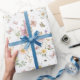 Beautiful wrapping paper featuring soft pastel watercolor wildflowers in various shades of blush, pink, lavender, yellow, blue and green.