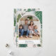 Hand painted holiday photo card featuring a personalised greeting along side a wintery forest illustration.