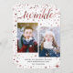 Our enchanted wishes 2-photo card features whimsical script typography for "twinkle" and stars and falling snow in burgundy. Easily personalise with your photos and family name. #Enchanted #PhotoCards