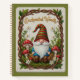 Step into a world of folklore with the "Enchanted Woods" journal. This cover features a delightful faux-embroidery illustration of a friendly forest gnome with a long white beard and a tall, red-and-green striped hat. He is perched on a log surrounded by vibrant red-spotted mushrooms (amanita muscaria) and delicate white daisies. The scene is enclosed in a rustic, "hand-stitched" vine and leaf border on a clean linen-textured background, offering an intricate needlepoint aesthetic that feels warm and magical.