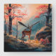 Enchanting Autumn Deer Forest Scene Design Square Wall Clock