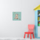Enchanting children's room design. It features charming illustrations of little teddy with a bonnet. Background light green.